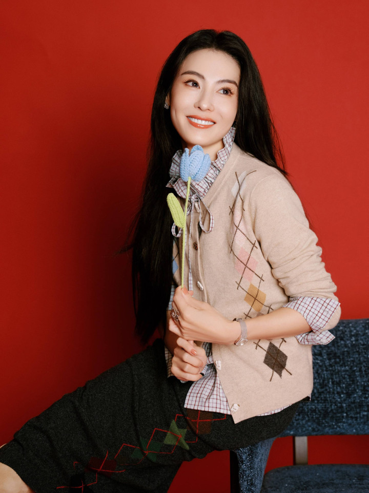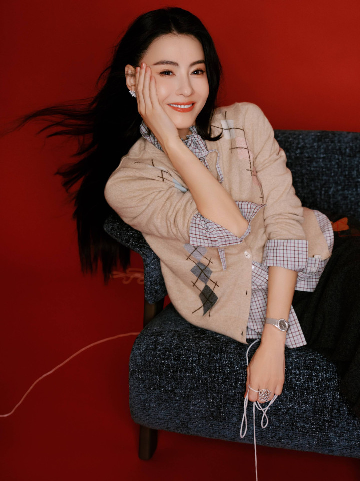这次活动上,张柏芝身穿杏色菱格纹针织开衫,搭配格纹立领衬衫,温柔又大气,下身搭配深灰色菱格纹包臀长裙和驼色长靴,由内而外散发出端庄又优雅的气质,又要为漂亮柏芝尖叫了!为服装进行点缀的首饰很有轻奢感,耳坠和项链选用的花朵造型也和现场的精致布景有着巧妙的匹配度,活泼的粉色与简约的杏色白色毫不冲突,整体让人眼前一亮,柏芝还是太权威了好吧!
