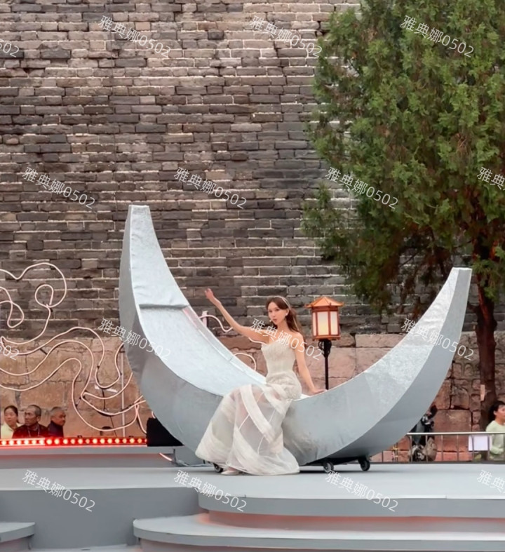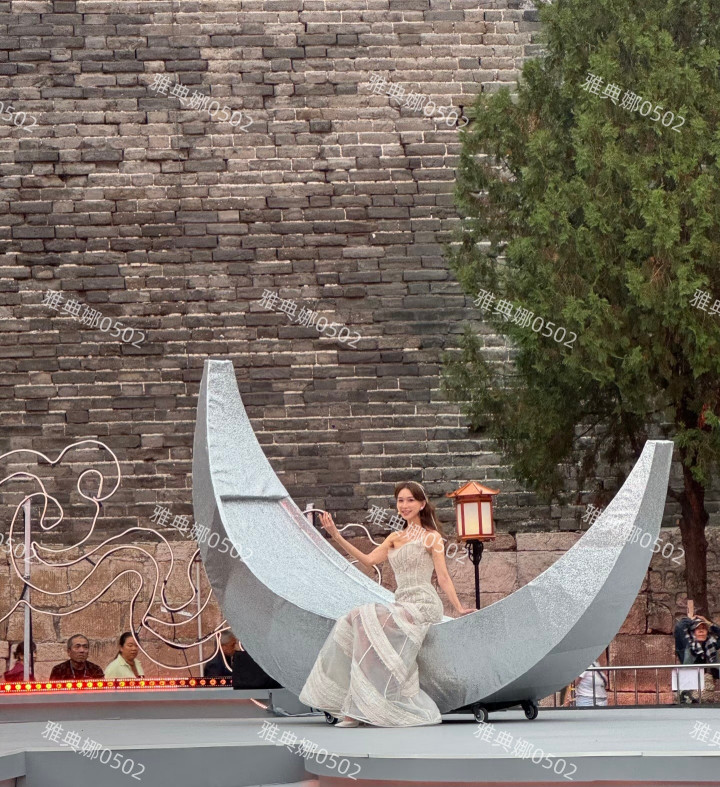 十一假期爬长城的人真多, 但此行居然有意外的收获,就是遇到了志玲姐姐,她在为晚会彩排节目,穿着一件白色礼服的她,坐在一个银色月亮形的道具上,仿佛月光女神一般又美又仙。