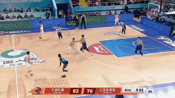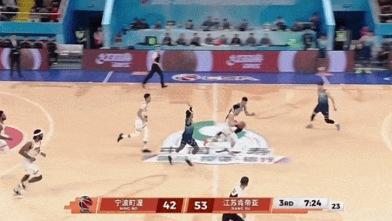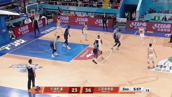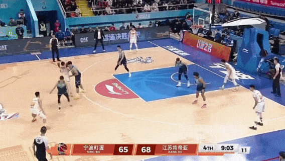 第四节8分59秒,庞峥麟运球找贾尔斯掩护,贾尔斯突然顺下,导致愈长栋只敢伸手延续一下就赶紧跟随贾尔斯,庞峥麟三分线外一米半处出手,又是空心入网