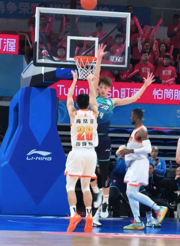 第三节7分22秒,庞峥麟还是在快攻反击中,撤步来到三分线外,出手命中三分,