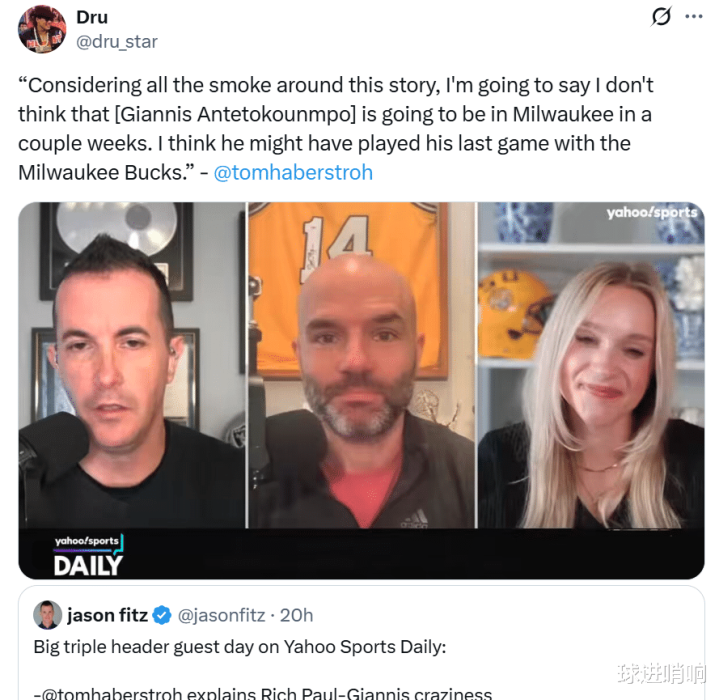 ESPN的Marc J. Spears公开表示,联盟内部普遍认为字母哥已经打完了自己在雄鹿队的最后一场比赛,Tom Haberstroh给出相同说法。