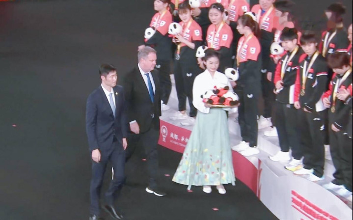 索琳刘国梁为成都混团世界杯冠军中国队颁奖杯, 王励勤刘诗雯颁奖